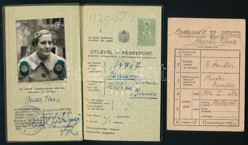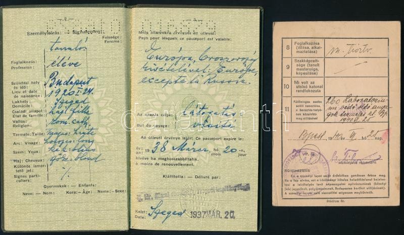 1937, 1940 Magyar Királyság által kiállított fényképes útlevél, személ... https://www.darabanth.com/de/424-Fernauktion/424.0/Kunst-Dokumente-andere-Sammelgebiete/Dokument~500018/1937-1940-Magyar-Kiralysag-altal-kiallitott-fenykepes-utlevel-szemelyi-lappal-Hungaria~II2699757