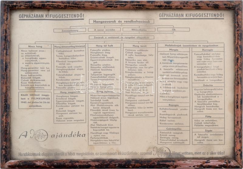 1942 Mozigépházban tapasztalható hibák keresőtáblázata, üvegezett kere... https://www.darabanth.com/de/424-Fernauktion/424.0/Kunst-Dokumente-andere-Sammelgebiete/Drucksachen~2000002/1942-Mozigephazban-tapasztalhato-hibak-keresotablazata-uvegezett-keretben-18-5C39724-cm~II2701036