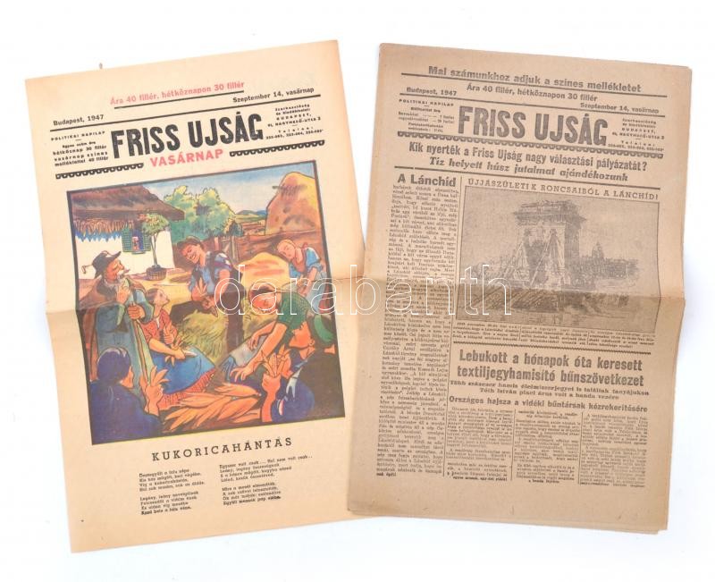 1947 Friss Ujság 1947. szept. 14. "Újjászületik roncsaiból a Lánchíd!"... https://www.darabanth.com/de/424-Fernauktion/424.0/Kunst-Dokumente-andere-Sammelgebiete/Drucksachen~2000002/1947-Friss-Ujsag-1947-szept-14-Ujjaszuletik-roncsaibol-a-Lanchid-Szerk-Gereb-Istvan~II2700894