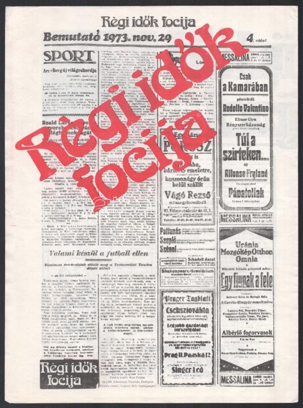 1973 Régi idők focija c. film ismertetője https://www.darabanth.com/de/424-Fernauktion/424.0/Kunst-Dokumente-andere-Sammelgebiete/Drucksachen~2000002/1973-Regi-idok-focija-c-film-ismertetoje~II2697089
