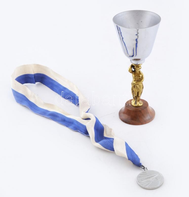 Beschreibung: 1980 V.S.C. területi bajn. SD. kat. feliratú érem, szalaggal + Serleg, fém és fa, jelzés nélkül, m: 18,5 cm