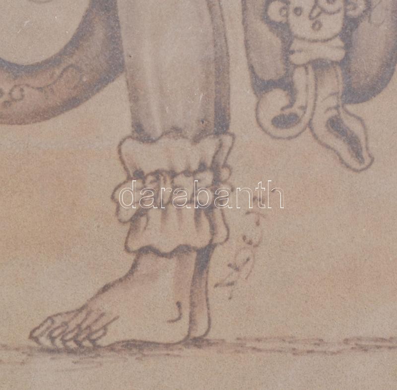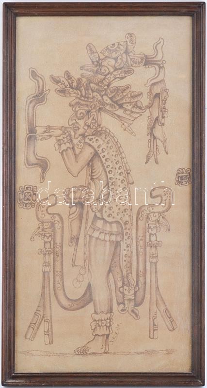 Beschreibung: Sámán v. törzsfőnük. Ismeretlen technika (nyomat?), karton. Üvegezett fakeretben. 57,5x29 cm.