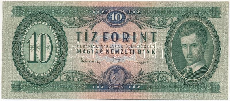 1949. 10Ft "A 197 106273" T:III fo. Adamo F3 https://www.darabanth.com/de/424-Fernauktion/424.0/Numismatik/Ungarische-Banknoten~1500009/1949-10Ft-A-197-106273-TIII-fo-Adamo-F3~II2696308