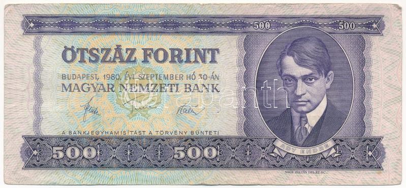 1980. 500Ft T:III Adamo F42 https://www.darabanth.com/de/424-Fernauktion/424.0/Numismatik/Ungarische-Banknoten~1500009/1980-500Ft-TIII-Adamo-F42~II2700438