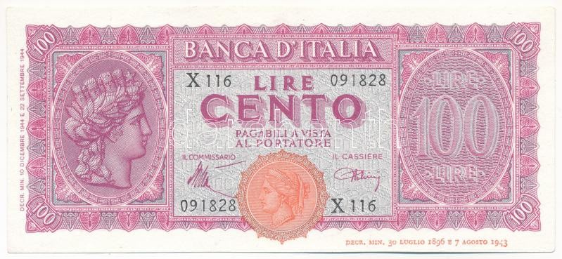 Beschreibung: Olaszország 1944. 100L "X 116 091828" T:III szép papír