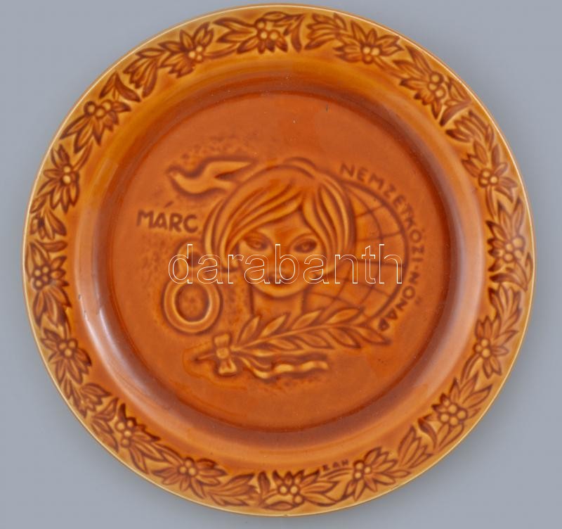 Beschreibung: Gránit "Nemzetközi Nőnap Márc. 8." fali dísztányér. Mázas kerámia, jelzett, hibátlan, d: 24 cm