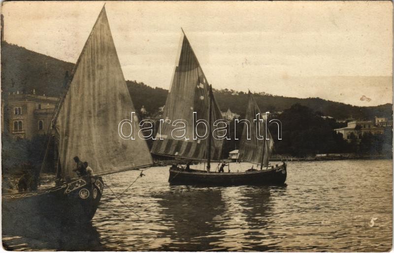 1907 Abbazia, Opatija; vitorlás hajók / sailing ships. photo Atelier B... https://www.darabanth.com/de/425-Fernauktion/425.0/Ansichtskarten/Kroatien~2000009/1907-Abbazia-Opatija-vitorlas-hajok-sailing-ships-photo-Atelier-Betty-EK~II2668490
