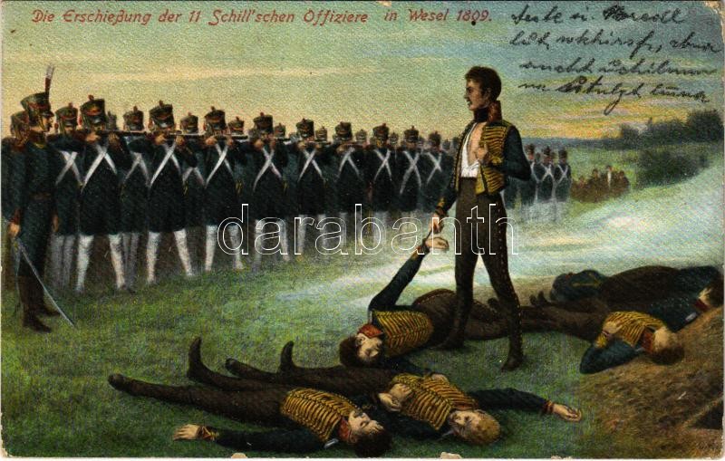1910 Die Erschießung der 11 Schill'schen Offiziere in Wesel 1809 ... https://www.darabanth.com/de/425-Fernauktion/425.0/Ansichtskarten/Militaria~2000035/1910-Die-ErschieC39Fung-der-11-Schillschen-Offiziere-in-Wesel-1809-Execution-of-the-11-Schill-Offic~II2708981