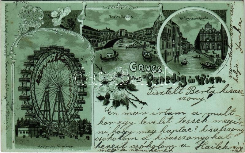 1901 Wien, Vienna, Bécs; Venedig in Wien. Riesenrad, Rialto-Brücke, St. Giovanni-Brücke / ferris wheel, bridge. Regel u. Krug Art Nouveau, floral, litho (fl)