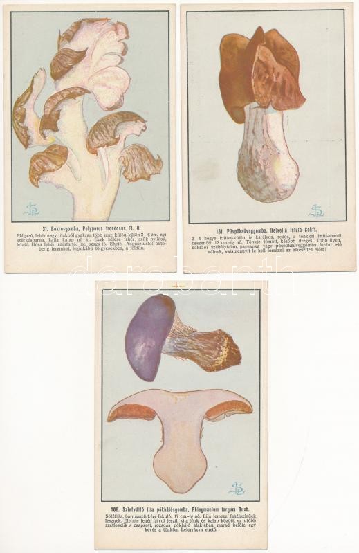 Beschreibung: Magyar gombáskönyvek és képek. Szemere László szerkesztése - 6 db régi képeslap / Hungarian mushrooms - 6 pre-1945 postcards
