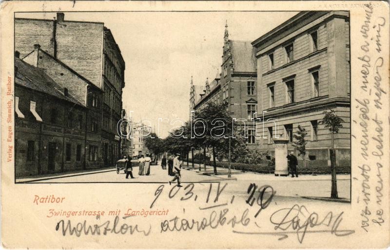 1903 Racibórz, Ratibor; Zwingerstrasse mit Landgericht / street view, ... https://www.darabanth.com/de/425-Fernauktion/425.0/Ansichtskarten/Polen~2000078/1903-Raciborz-Ratibor-Zwingerstrasse-mit-Landgericht-street-view-restaurant-and-hotel-distric~II2708986