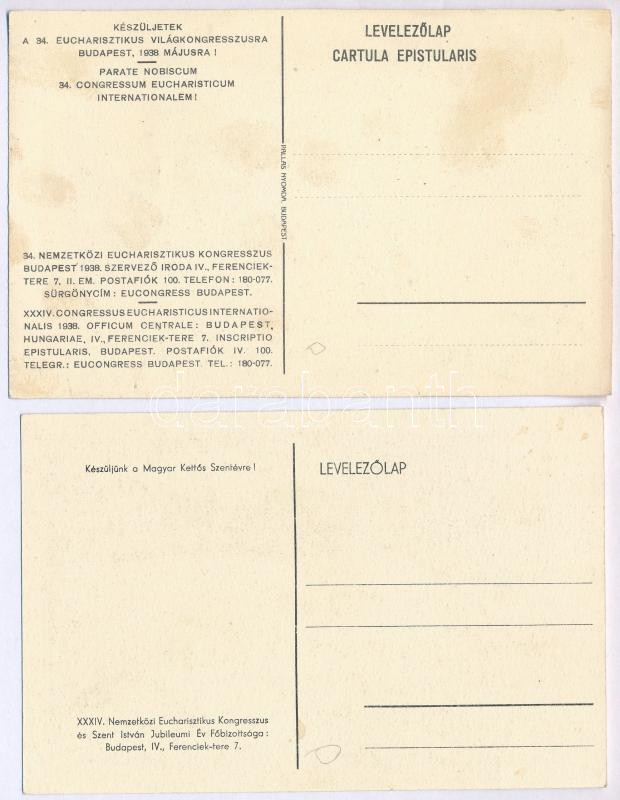 1938 Budapest XXXIV. Nemzetközi Eucharisztikus Kongresszus / 34th International Eucharistic Congress - 2 db régi grafikus képeslap / 2 pre-1945 graphic postcards