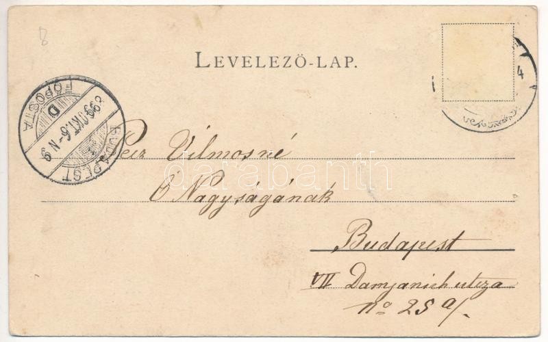 1899 (Vorläufer) Kolozsvár, Cluj; Wesselényi Miklós utca torkolata, városi kisvasút, vonat, Szegedi Zoltán és ifj. Pere István üzlete. Dunky fivérek kiadása / street, urban railway, train, shops