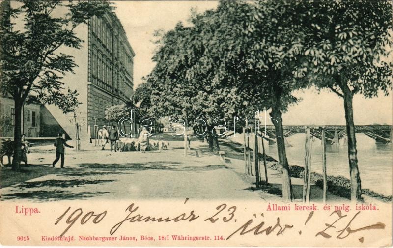 1900 Lippa, Lipova; Állami kereskedelmi és polgári iskola, híd. Nachba... https://www.darabanth.com/de/425-Fernauktion/425.0/Ansichtskarten/Siebenburgen~2000006/1900-Lippa-Lipova-Allami-kereskedelmi-es-polgari-iskola-hid-Nachbargauer-Janos-kiadasa-t~II2709841