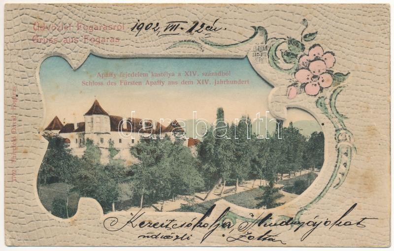 1902 Fogaras, Fagaras; Apaffy (Apafi) fejedelem kastélya a XIV. századból. Thierfeld Dávid kiadása / Schloss des Fürsten Apaffy aus dem XIV. Jahrhundert / castle from the 14th century. Floral (fl)