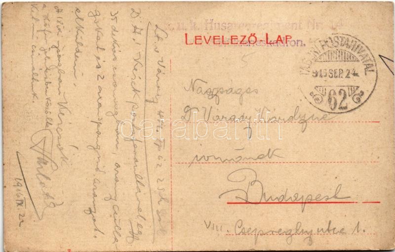 Beschreibung: 1916 Erzsébetváros, Dumbraveni; Takarékpénztár szálloda és kávéház / savings bank's hotel and café + "K.u.K. Husarenregiment Nr. 14. Schützeneskadron" (EK)