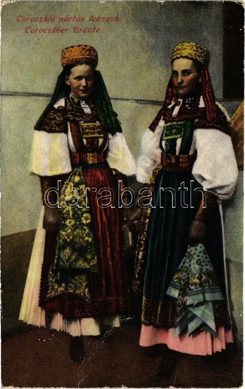 Beschreibung: 1918 Torockó, Rimetea; Toroczkói pártás leányok. Erdélyi udvari fényképész felvétele. Vasúti levelezőlapárusítás / Torockóer Bräute / Transylvanian folklore (EK)