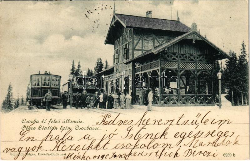 1900 Tátra, Magas-Tátra, Vysoké Tatry; Csorbató felső fogaskerekű vasú... https://www.darabanth.com/de/425-Fernauktion/425.0/Ansichtskarten/Slowakei~2000007/1900-Tatra-Magas-Tatra-Vysoke-Tatry-Csorbato-felso-fogaskereku-vasutallomas-vonat-goz~II2710803
