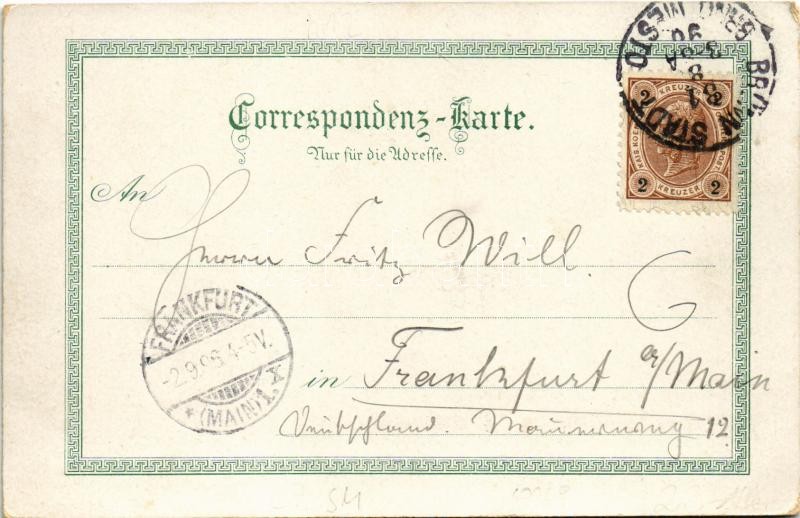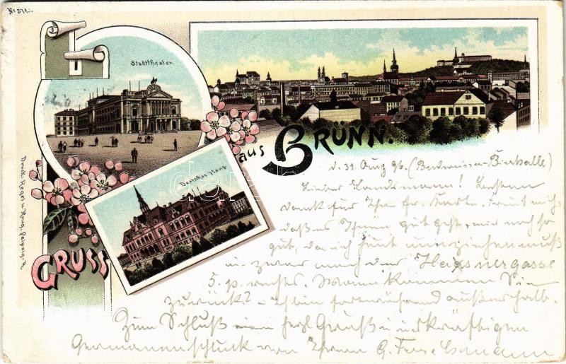 Beschreibung: 1896 (Vorläufer!) Brno, Brünn; Stadttheater, Deutsches Haus / theatre, German House, general view. Regel u. Krug Art Nouveau, floral, litho (EK)