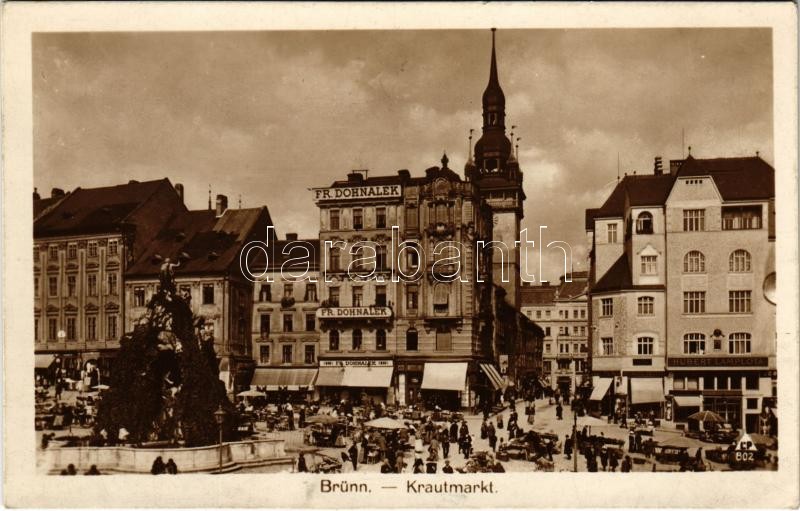 1927 Brno, Brünn; Krautmarkt / herb market, shops of Fr. Dohnalek, Hub... https://www.darabanth.com/de/425-Fernauktion/425.0/Ansichtskarten/Tschechische-Republik~2000061/1927-Brno-Brunn-Krautmarkt-herb-market-shops-of-Fr-Dohnalek-Hubert-Lamplota~II2708992