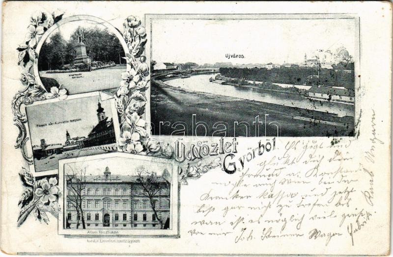 1898 (Vorläufer) Győr, Újváros, zsinagóga, Kisfaludy szobor, Püspökvár... https://www.darabanth.com/de/425-Fernauktion/425.0/Ansichtskarten/Ungarn~2000005/1898-Vorlaufer-Gyor-Ujvaros-zsinagoga-Kisfaludy-szobor-Puspokvar-es-Karmelita-templom~II2710086