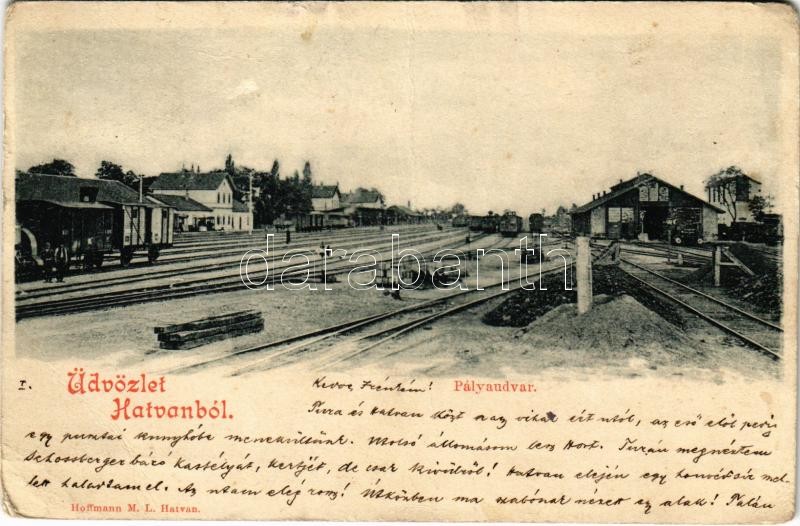1900 Hatvan, Pályaudvar, vasútállomás, vonat, gőzmozdony. Hoffmann M. ... https://www.darabanth.com/de/425-Fernauktion/425.0/Ansichtskarten/Ungarn~2000005/1900-Hatvan-Palyaudvar-vasutallomas-vonat-gozmozdony-Hoffmann-M-L-kiadasa-fa~II2712683