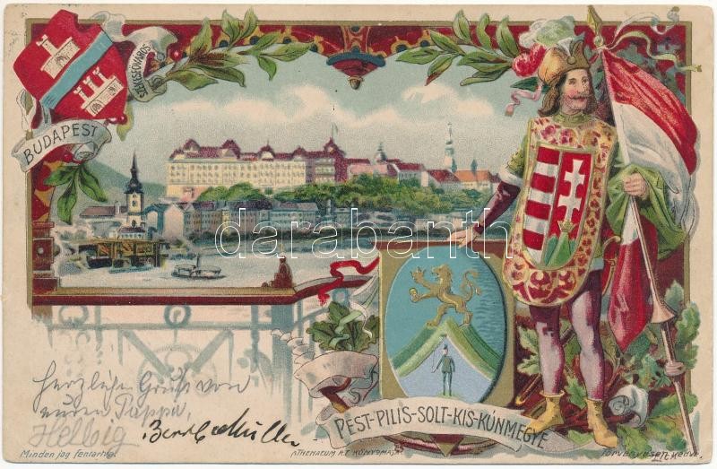 1902 Budapest székesfőváros. Pest-Pilis-Solt-Kis-Kun megye címere és m... https://www.darabanth.com/de/425-Fernauktion/425.0/Ansichtskarten/Ungarn~2000005/1902-Budapest-szekesfovaros-Pest-Pilis-Solt-Kis-Kun-megye-cimere-es-magyar-zaszlo-Athenaeum~II2709989