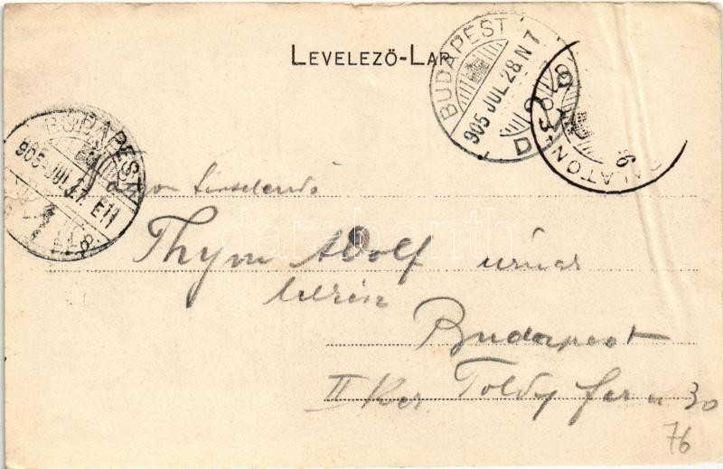 Beschreibung: 1905 Balatonföldvár, nyaralók, villák. Bem Gyula kiadása (szakadás / tear)