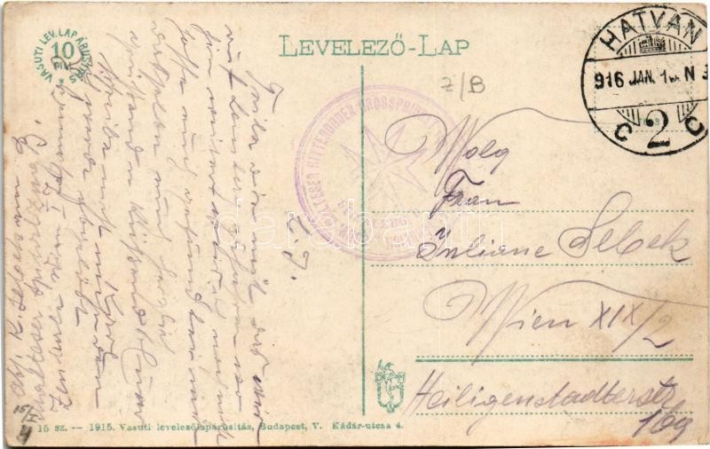1916 Hatvan, Cukorgyári bejárat. Vasúti levelezőlapárusítás 15. sz. 1915. + "Souv. Malteser Ritterorden Grosspriorat von Böhmen u. Österreich SPITALZUG B" (EK)