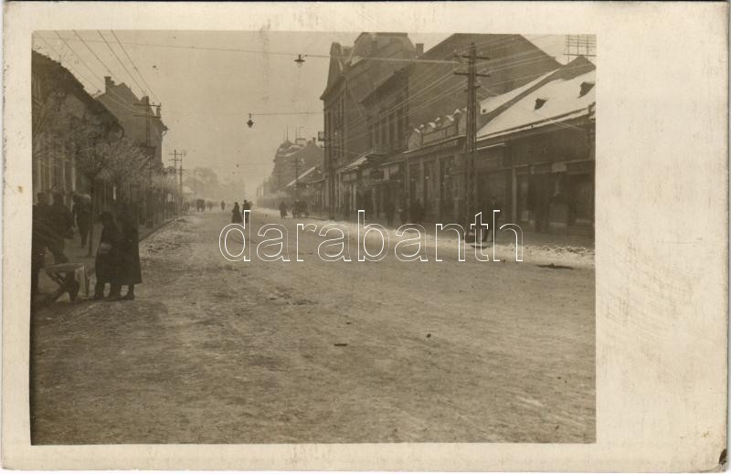 Beschreibung: 1917 Szolnok, utca télen, Korzó kávéház, üzletek. photo (EK)