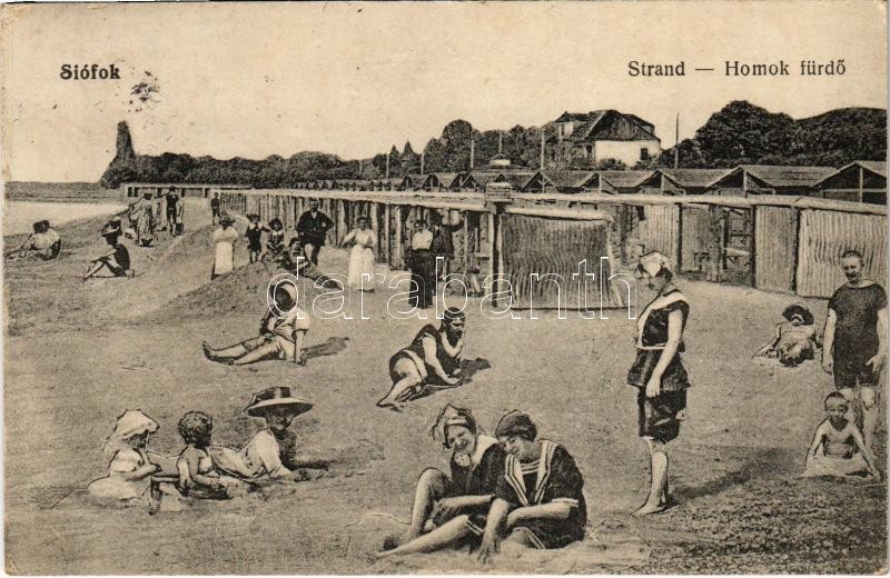 1919 Siófok, strand, Homok fürdő, fürdőzők (EK) https://www.darabanth.com/de/425-Fernauktion/425.0/Ansichtskarten/Ungarn~2000005/1919-Siofok-strand-Homok-furdo-furdozok-EK~II2705531
