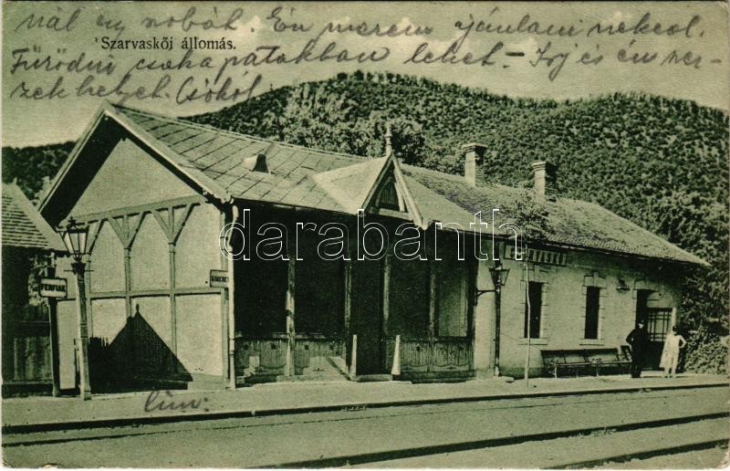 1927 Szarvaskő, Vasútállomás (ázott sarok / wet corner) https://www.darabanth.com/de/425-Fernauktion/425.0/Ansichtskarten/Ungarn~2000005/1927-Szarvasko-Vasutallomas-azott-sarok-wet-corner~II2712684