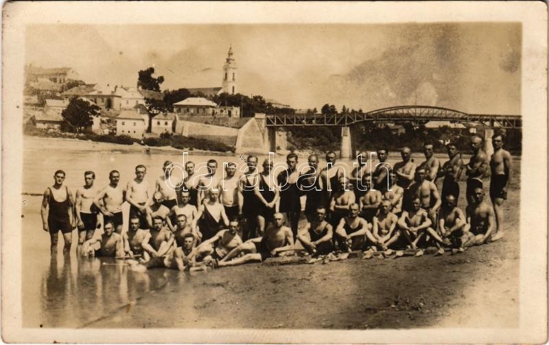 Beschreibung: 1928 Sárospatak, a sárospataki csendőriskola úszó és vízből mentő altiszti hallgatói. photo (ragasztónyom / glue marks)