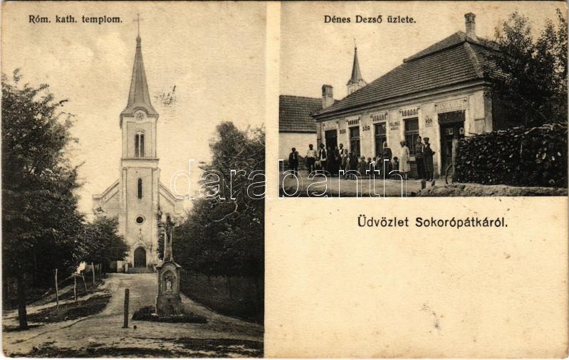 1929 Sokorópátka, Római katolikus templom, Dénes Dezső üzlete és saját... https://www.darabanth.com/de/425-Fernauktion/425.0/Ansichtskarten/Ungarn~2000005/1929-Sokoropatka-Romai-katolikus-templom-Denes-Dezso-uzlete-es-sajat-kiadasa-fl~II2710099