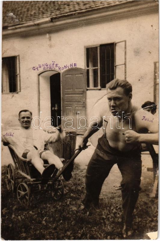 1932 Gyöngyösapáti (Gencsapáti), Józsi és Miki a konyha előtt, humoros... https://www.darabanth.com/de/425-Fernauktion/425.0/Ansichtskarten/Ungarn~2000005/1932-Gyongyosapati-Gencsapati-Jozsi-es-Miki-a-konyha-elott-humoros-erohuzas-talicskav~II1945238