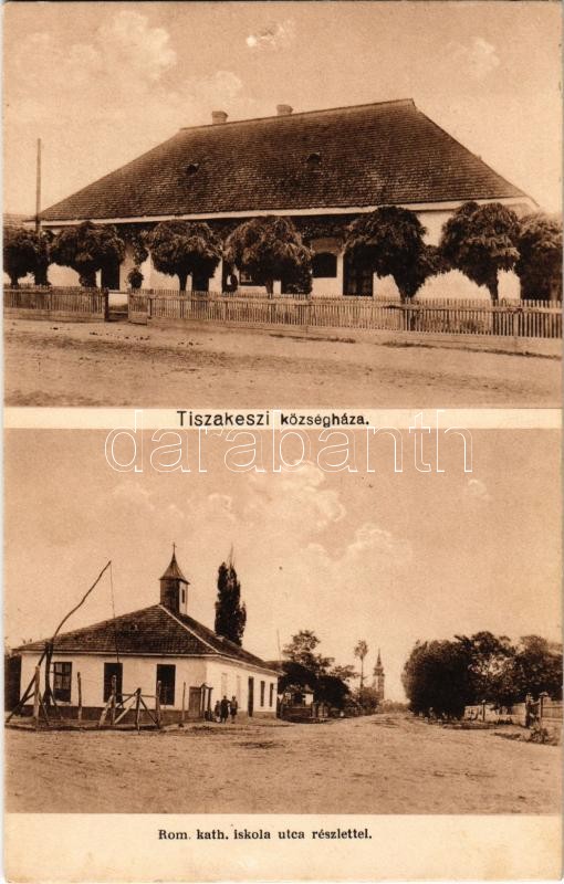 1933 Tiszakeszi, községháza, Római katolikus iskola, utca https://www.darabanth.com/de/425-Fernauktion/425.0/Ansichtskarten/Ungarn~2000005/1933-Tiszakeszi-kozseghaza-Romai-katolikus-iskola-utca~II1945236