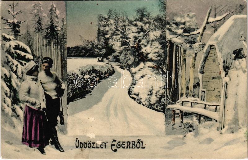 Beschreibung: Eger télen. Baross nyomda kiadása. Art Nouveau (felületi sérülés / surface damage)