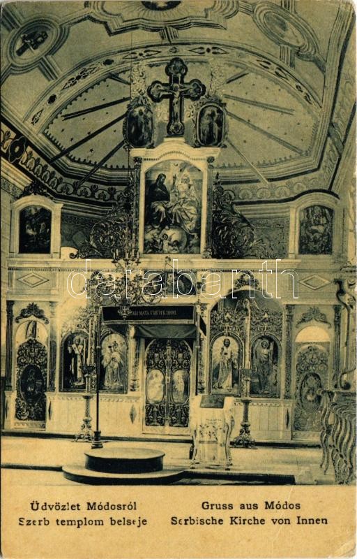 1912 Módos, Jasa Tomic; Szerb ortodox templom belseje. Hoffmann Béla k... https://www.darabanth.com/de/425-Fernauktion/425.0/Ansichtskarten/Vojvodina~2000010/1912-Modos-Jasa-Tomic-Szerb-ortodox-templom-belseje-Hoffmann-Bela-kiadasa-Serbische-Kirche-v~II2711138