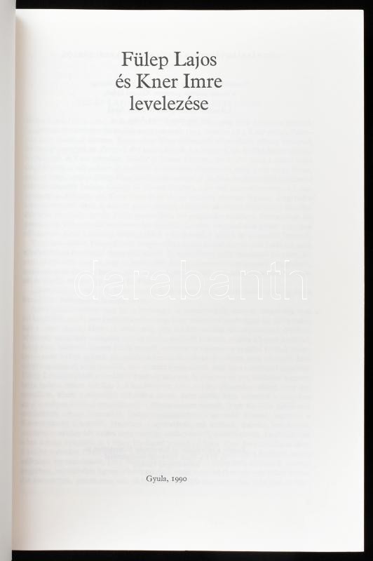 Fülep Lajos és Kner Imre levelezése. Összeáll., bevezette és jegyzetelte: Sümegi György. Szerk.: Erdész Ádám. Forráskiadványok a Békés Megyei Levéltárból 17. Gyula, 1990, Békés Megyei Levéltár. Kiadói papírkötés, jó állapotban