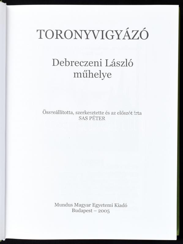 Sas Péter (szerk.): Toronyvigyázó. Debreczeni László műhelye. Bp., 200... https://www.darabanth.com/de/425-Fernauktion/425.0/Bucher/Bucher-Architektur-Kunst~1000012/Sas-Peter-szerk-Toronyvigyazo-Debreczeni-Laszlo-muhelye-Bp-2005-Mundus-Magyar-Egyetem~II2704810