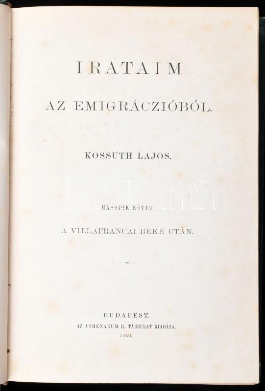 Kossuth Lajos: Irataim az emigrációból I-III. Bp., 1880-1882, Athenaeu... https://www.darabanth.com/de/425-Fernauktion/425.0/Bucher/Bucher-Geschichte~1000009/Kossuth-Lajos-Irataim-az-emigraciobol-I-III-Bp-1880-1882-Athenaeum-Kiadoi-aranyozott-eges~II2705343