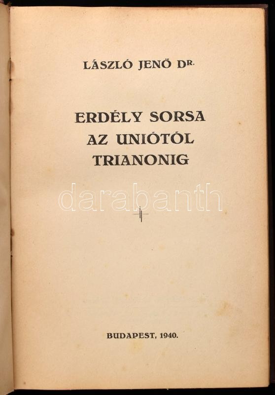 László Jenő: Erdély sorsa az uniótól Trianonig. Bp., 1940., (Tábori és... https://www.darabanth.com/de/425-Fernauktion/425.0/Bucher/Bucher-Geschichte~1000009/Laszlo-Jeno-Erdely-sorsa-az-uniotol-Trianonig-Bp-1940-Tabori-es-Tarsa-Bt-Kiadoi-k~II2712959