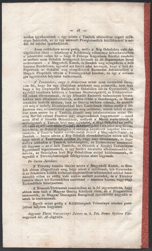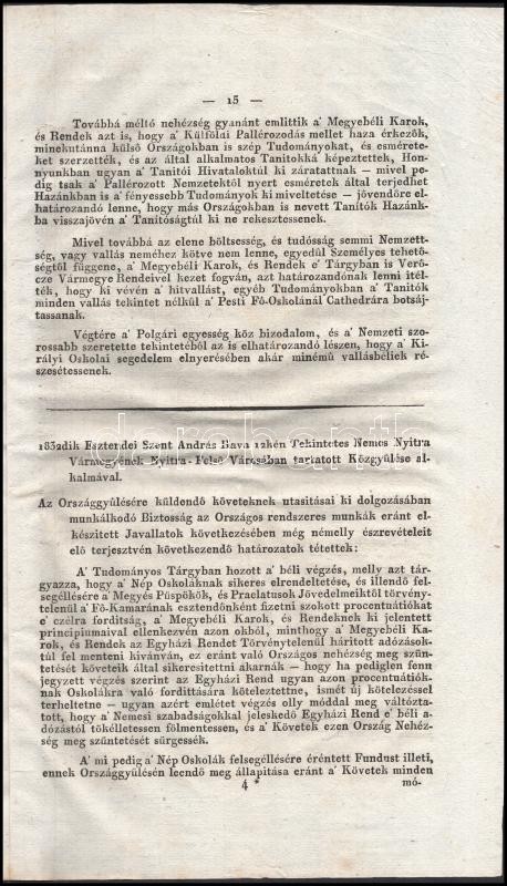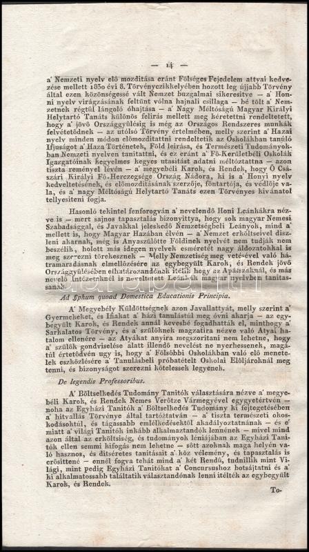 1832 Reflexiones quad opinionen excelsae regnicolaris deputationis in re litteraria per deputationem inclyti comitatus Nittriensis depromptae. Cum adnexae ejusdem inclyti comitatus derminatione. Tyrnaviae [Nagyszombat], 1832., Typ. Joannis Bapt. Jelinek, 16 p. Latin nyelven. Papírkötésben