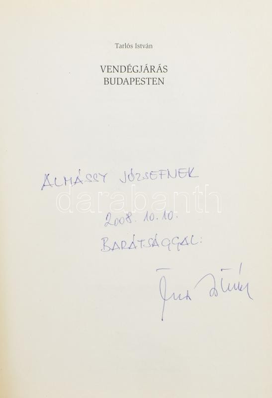 Tarlós István: Vendégjárás Budapesten, dedikált, Éghajlat könyvkiadó 2... https://www.darabanth.com/de/425-Fernauktion/425.0/Bucher/Bucher-Reise-und-Ortgeschichte~1000004/Tarlos-Istvan-Vendegjaras-Budapesten-dedikalt-Eghajlat-konyvkiado-2008-kiadoi-kartona~II2578066