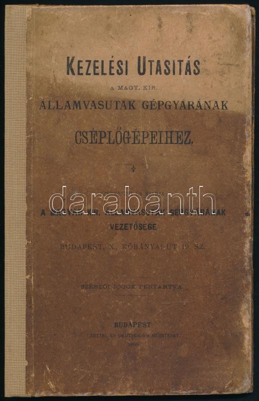 Kezelési utasítás a Magy. Kir. Államvasutak Gépgyárának cséplőgépeihez... https://www.darabanth.com/de/425-Fernauktion/425.0/Bucher/Bucher-Technik~1000017/Kezelesi-utasitas-a-Magy-Kir-Allamvasutak-Gepgyaranak-cseplogepeihez-Bp-Czettel-es-D~II2705715