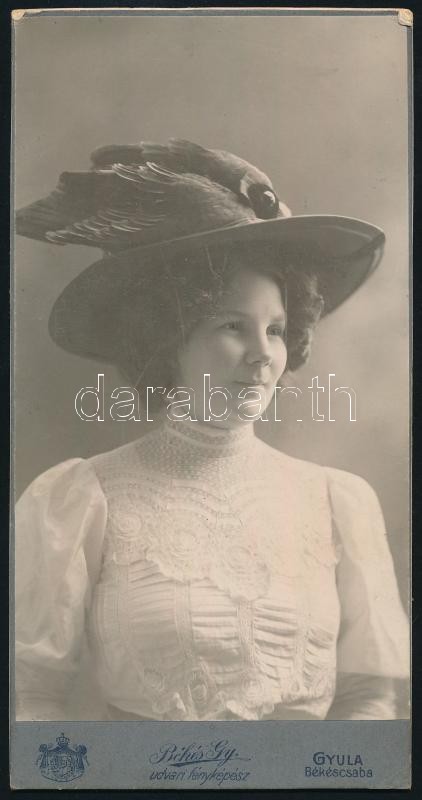 cca 1900 Kalapos hölgy portréja, keményhátú fotó Békés Gy. (Békéscsaba... https://www.darabanth.com/de/425-Fernauktion/425.0/Fotografie/Foto~500022/cca-1900-Kalapos-holgy-portreja-kemenyhatu-foto-Bekes-Gy-BekescsabaGyula-mutermebo~II2711187