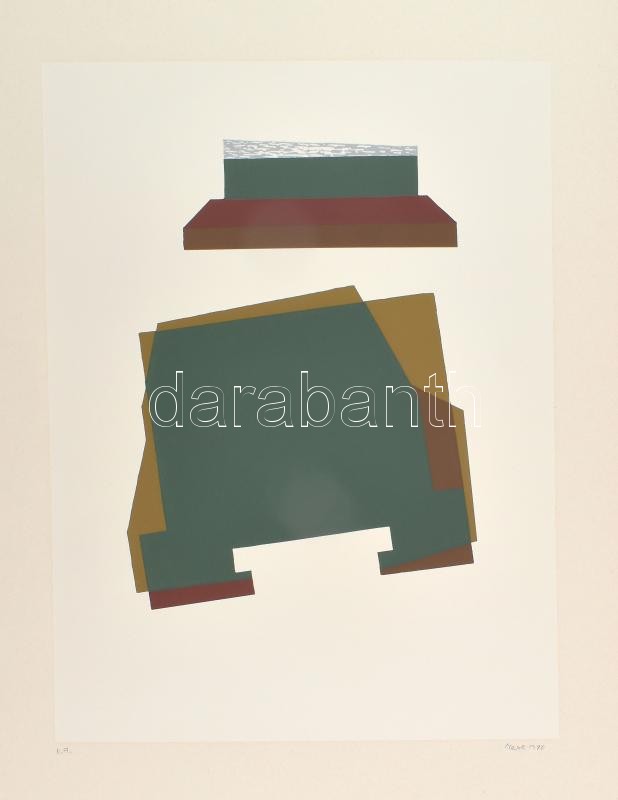 Beschreibung: Mark (Márkus), Anna (1928-): Konstruktivista kompozíció. Szitanyomat, papír, jelzett, művészpéldány E.A. jelzéssel. 45×34 cm.