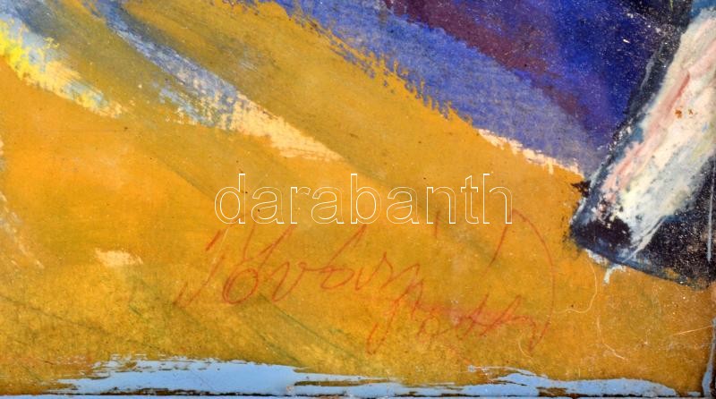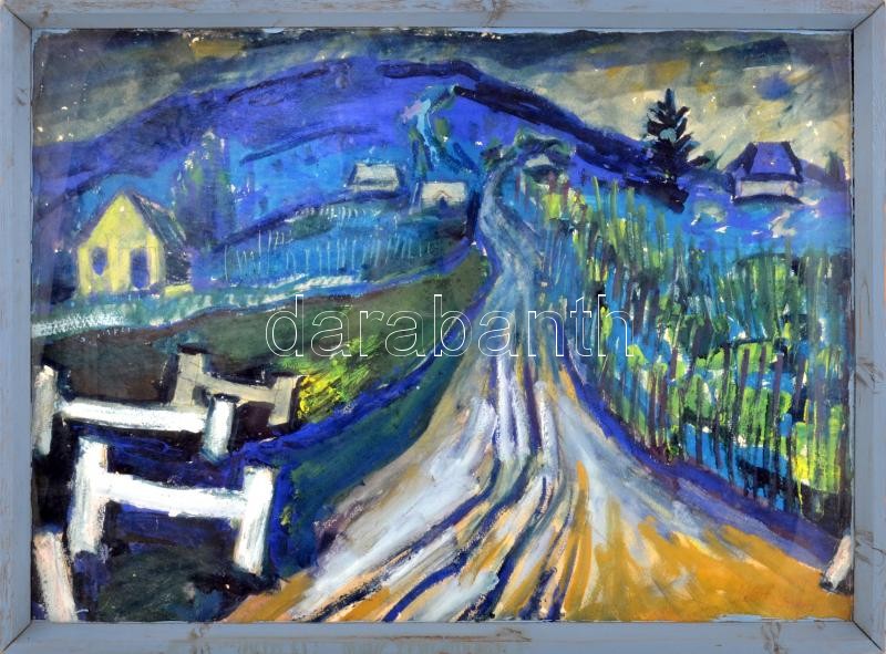 Tóvári Tóth István (1909-2004): Táj. Vegyes technika, farost, jelezve jobbra lent, hátoldalán Képcsarnok Vállalat töredékes és elmosódott címkéjével, mely szerint egy szombathelyi kiállításon szerepelt. Hátoldala foltos, kissé vetemedett, 50x70 cm, üvegezett fakeretben