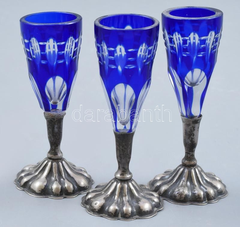 3 db ezüst (Ag) talpú likőrös pohárka. hámozott, anyagában színezett ü... https://www.darabanth.com/de/425-Fernauktion/425.0/Juwellen-und-Kunstobjekte-aus-Edelmetall/Juwellen-und-Kunstobjekte-aus-Edelmetall~1000024/3-db-ezust-Ag-talpu-likoros-poharka-hamozott-anyagaban-szinezett-uveg-Jelzett-mesterj~II2702128