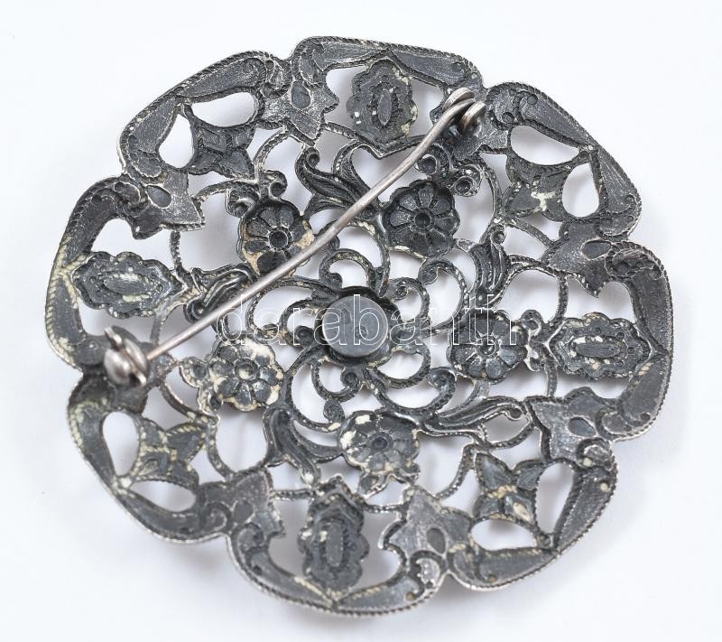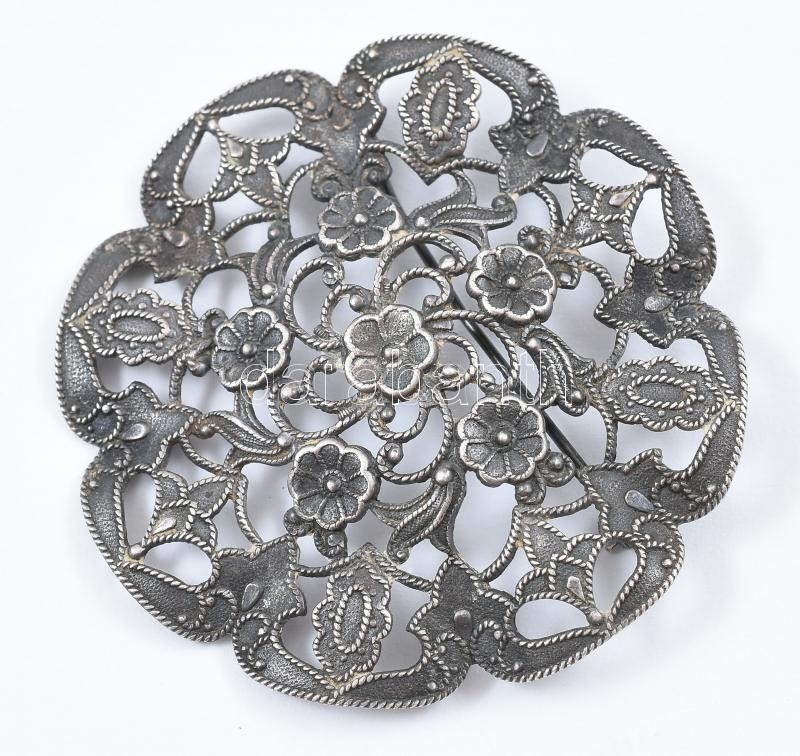 Ezüst(Ag) virágos bross, jelzett, d: 5,5 cm, nettó: 9,5 g https://www.darabanth.com/de/425-Fernauktion/425.0/Juwellen-und-Kunstobjekte-aus-Edelmetall/Juwellen-und-Kunstobjekte-aus-Edelmetall~1000024/EzustAg-viragos-bross-jelzett-d-5-5-cm-netto-9-5-g~II2705422